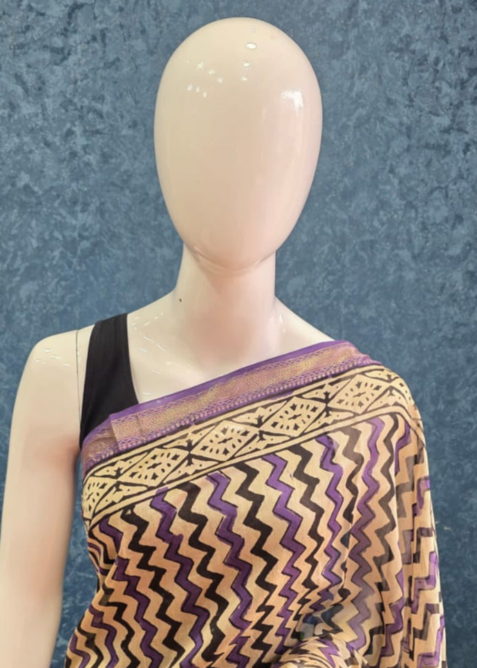 A Maheshwari saree is a traditional Indian handloom saree, known for its distinctive blend of silk and cotton. Originating from the town of Maheshwar in Madhya Pradesh, these sarees are characterized by their lightweight, lustrous feel, and intricate designs often featuring zari (gold or silver threads). They are known for their simplicity and elegance, with reversible designs and patterns often inspired by local architecture.