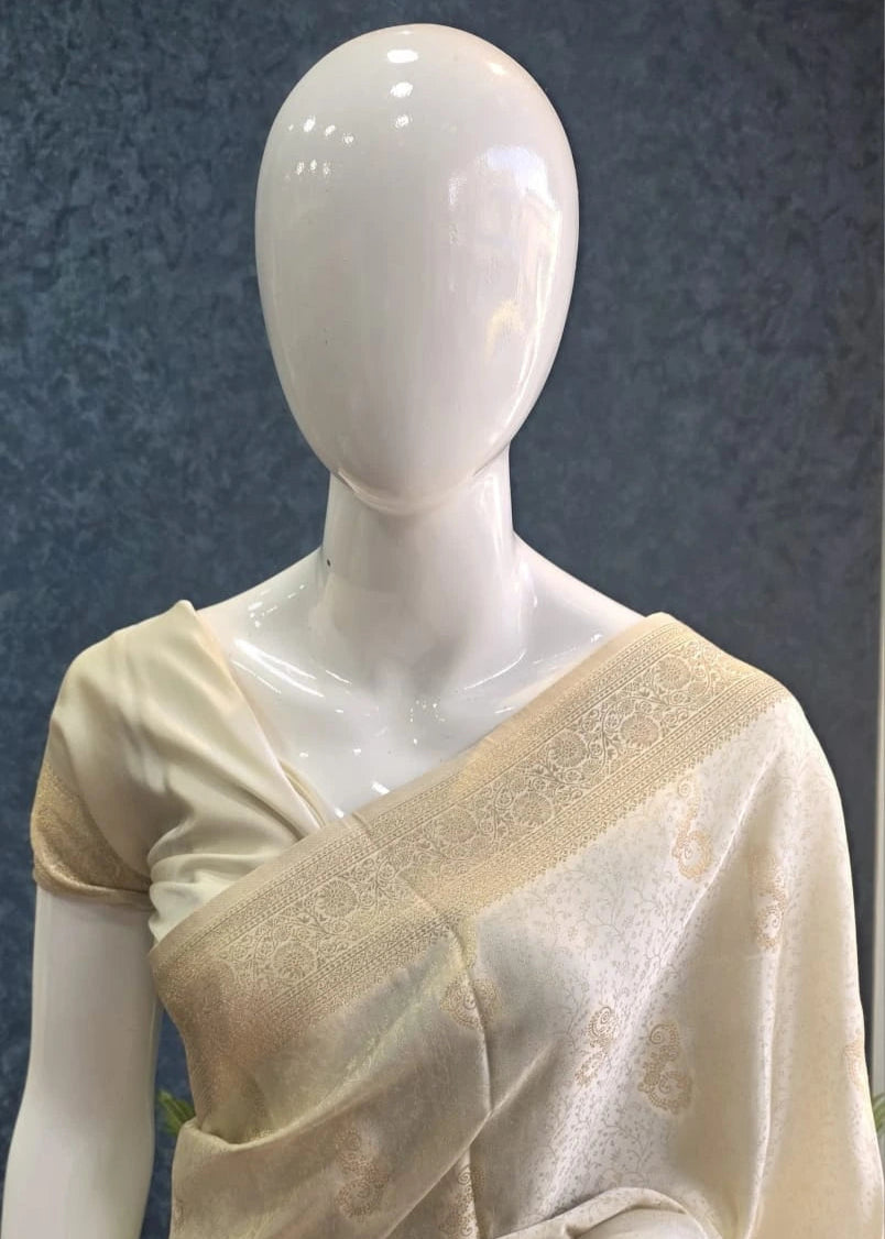 This exquisite white Mushroo silk drapes like a dream, with its subtle sheen and buttery smooth texture. A blend of tradition and luxury, it’s perfect for creating effortlessly elegant ensembles.