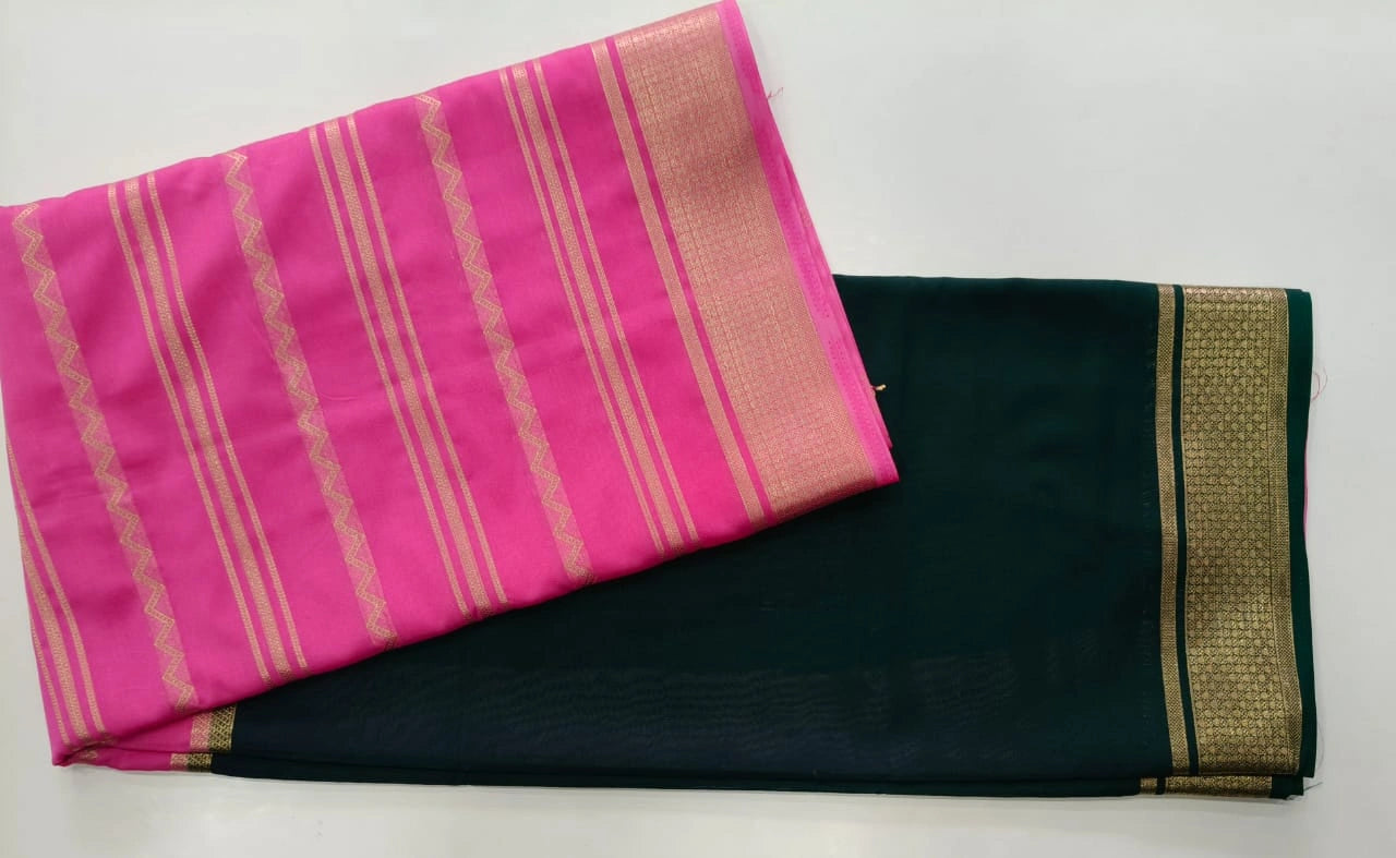 Decrease quantity for Mysore Silk Crepe Half & Half Bottle Green Pink
