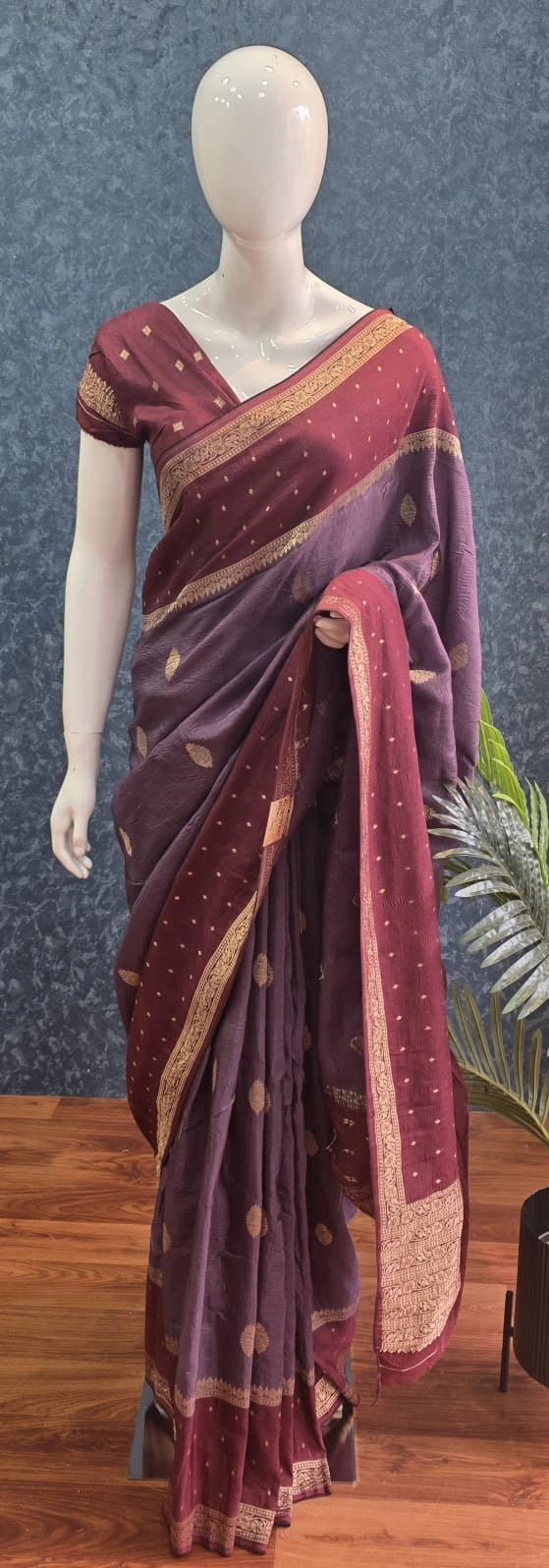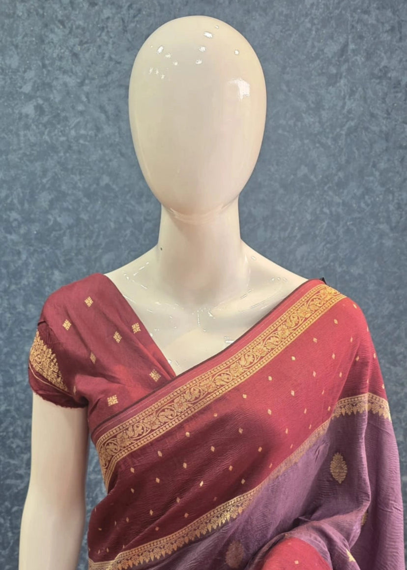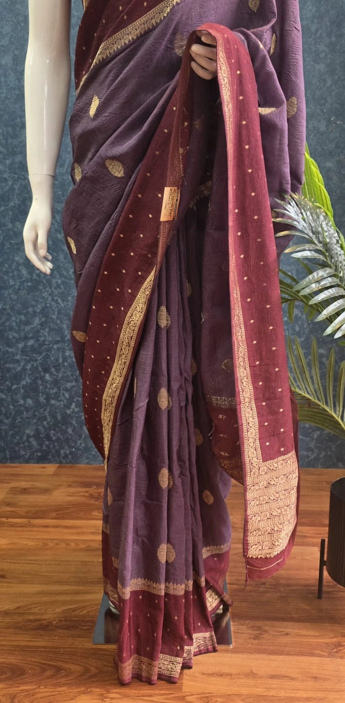 Increase quantity for Tussar Crepe Crush Dark Lavender Magenta