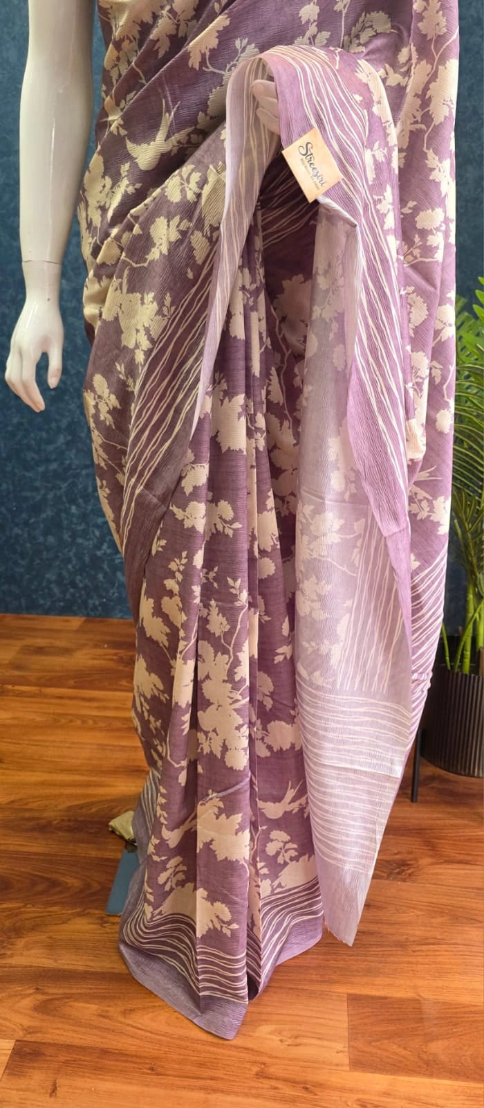 Increase quantity for Tussar Crush Floral Light Purple Cream