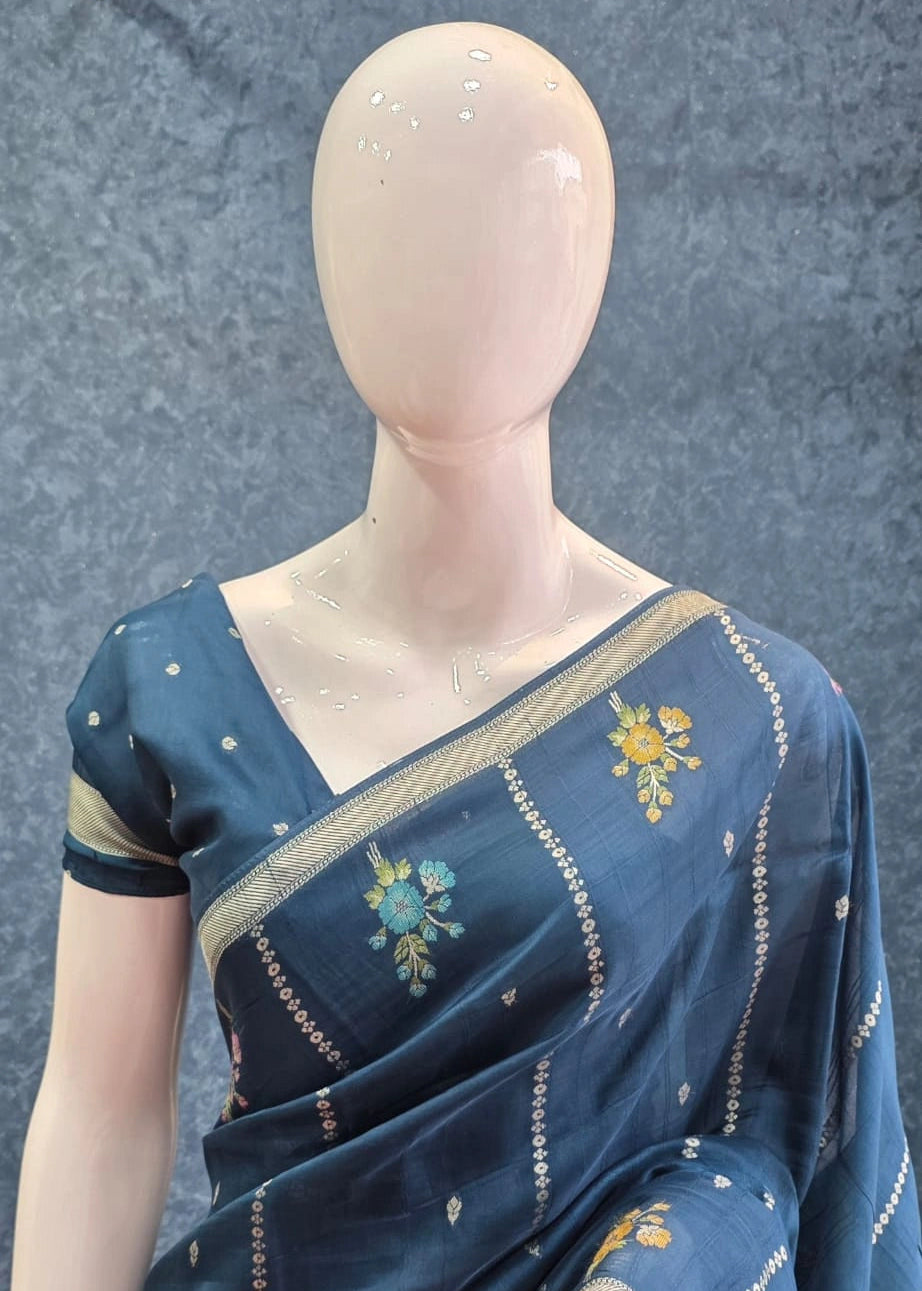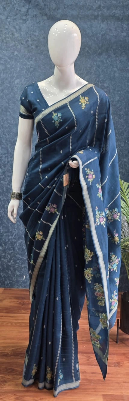 Decrease quantity for Tussar Silk Butta Teal Blue